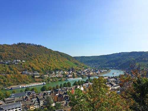 Dag 4: De route vervolgt zich over de Moezel en zodra we de eerste sluis passeren, krijg je het gevoel alsof je in een hele andere wereld bent beland. Het is hier rustiger en sprookjesachtig. Al slingerend brengt de Moezel ons langs charmante dorpjes en steile wijngaarden. We komen aan in Cochem, een van de meest geliefde plaatsen aan de Moezel, met smalle steegjes, vakwerkhuizen en de imposante Reichsburg.